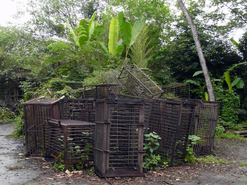 On the bile farms, the bears live in cages like these, which are displayed at the sanctuary to educate visitors. Some are “crush cages,” with ceilings that can be lowered to pin the bears to the floor.
