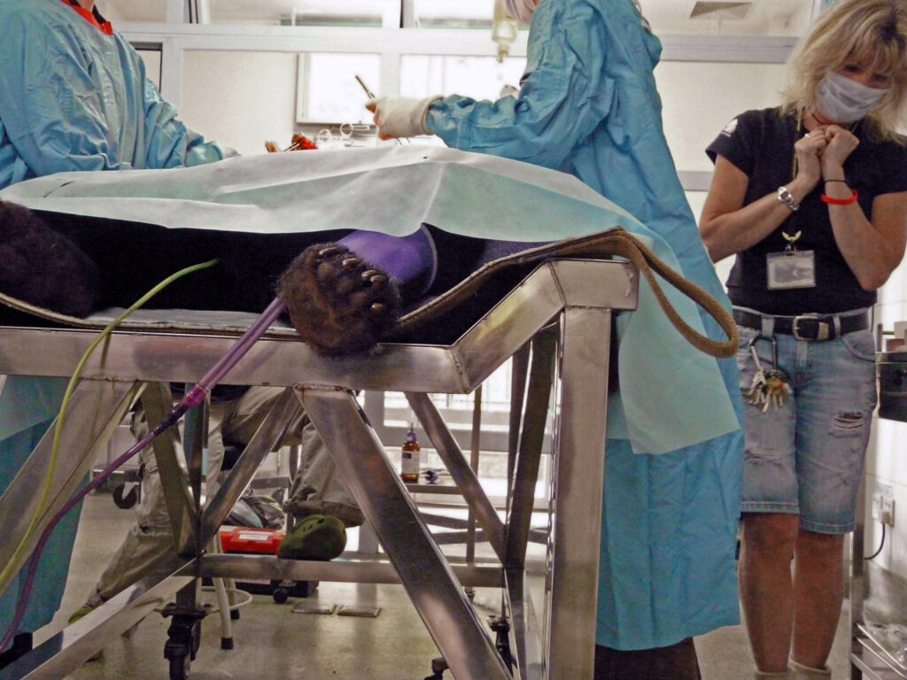 But before Monkey can relax with the others, she must first undergo several medical procedures. Today, veterinarian Monica Bando will remove the bear’s gall bladder, ruined after years of bile extraction. Bando will also look for embedded hardware, along with signs of liver cancer, believed to be a product of the cascading inflammatory responses to a lifetime of physical assaults. “She’s not out of the woods,” says Robinson, sounding like an anxious mom.